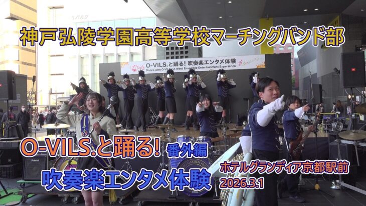 2026年3月1日 京都ホテルグランディア駅前広場で開催された 神戸弘陵学園高等学校マーチングバンド部のステージ演奏パフォーマンスです 初めて見て気に入った♪ブルーノマーズ選曲♪ ツインドラムから繰り出す元気なパフォーマンス