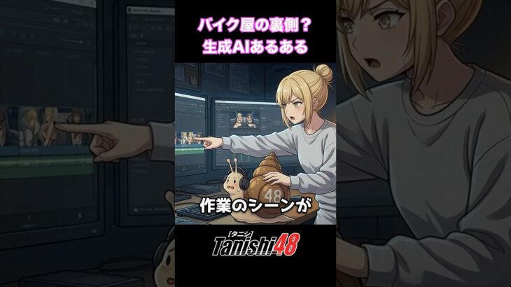 真面目なバイクレストアの作業シーンは何かに抵触するとかでに違反しているとかで生成出来ないくせに、頼んでもいないシーンは勝手に生成してくるAI…どうなってんの!? #バイク女子 #YouTubeあるある #AIアニメ #生成AI #Tanishi48 #ハプニング #誤BAN